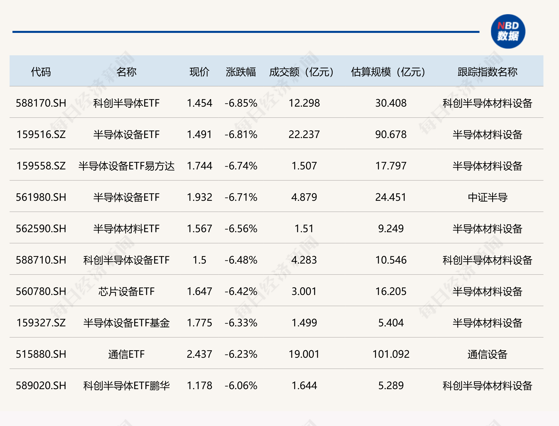ETF今日收评 | 酒、银行相关ETF涨超2%,半导体相关ETF跌超6%