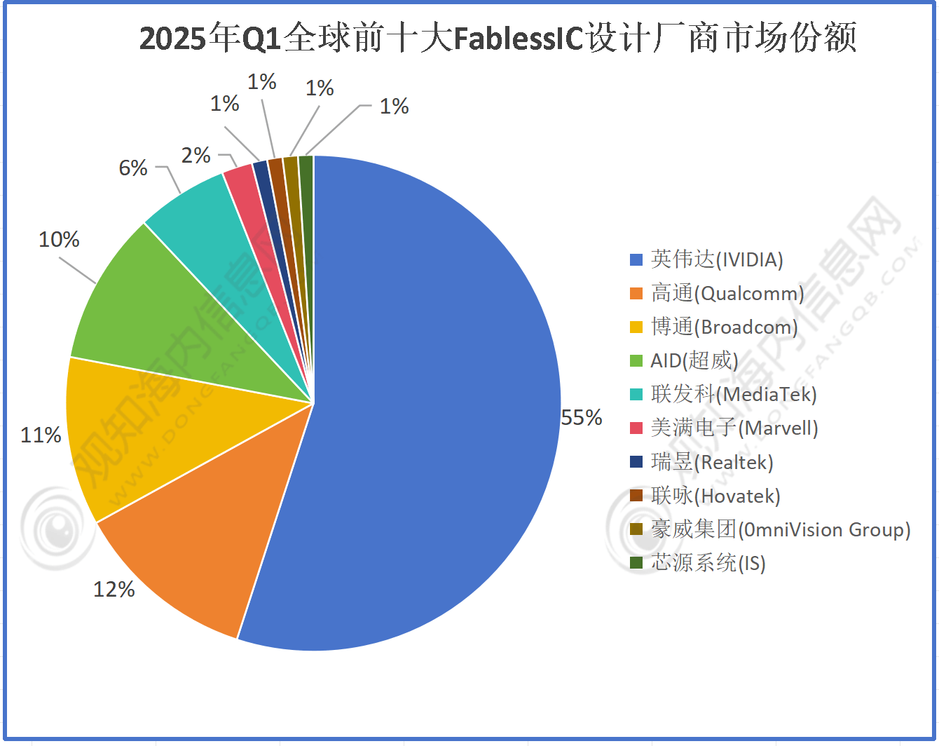 2025Q1全球前十大FablessIC设计厂商市场份额
