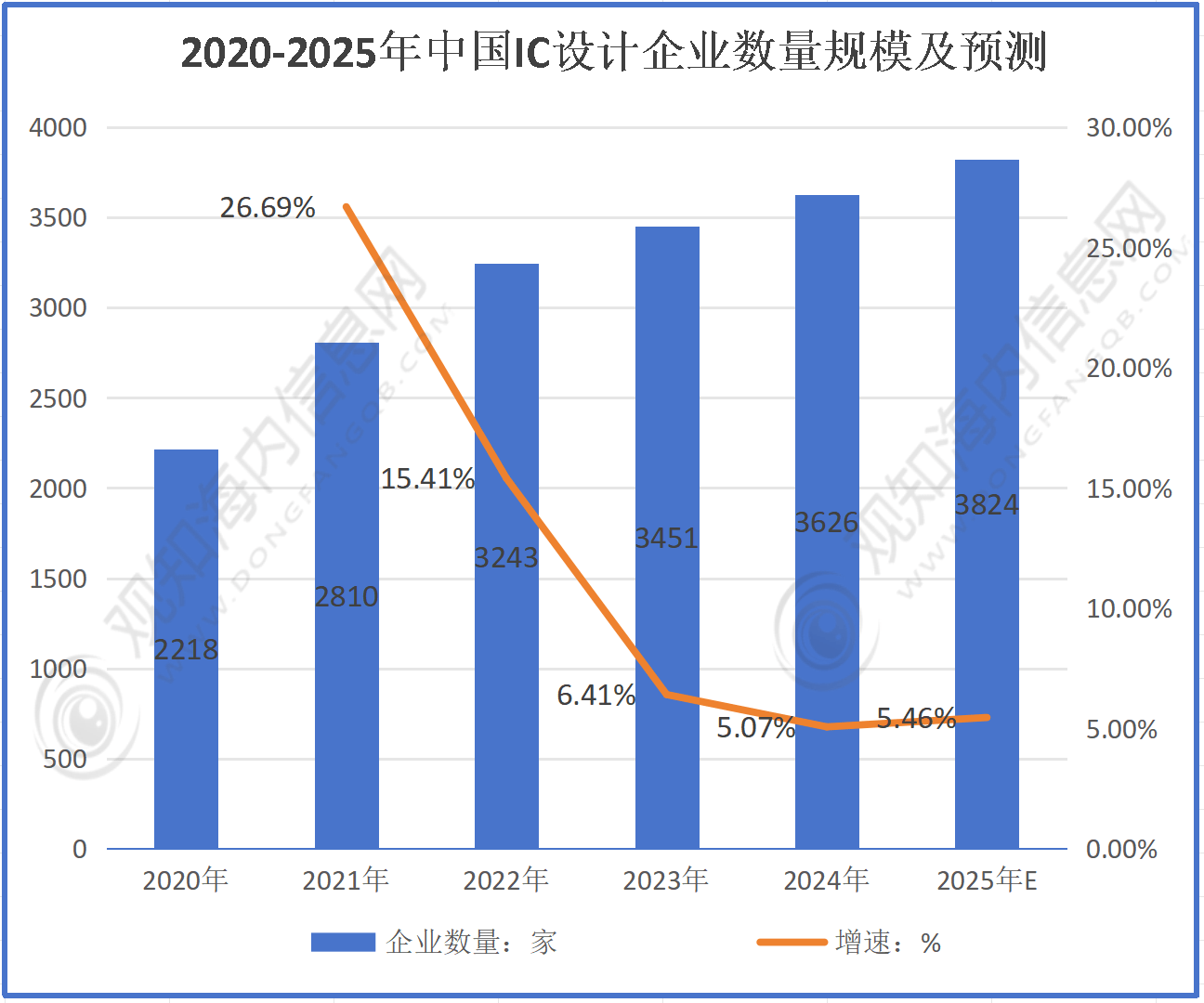 图表:2020-2025年中国IC设计行业或所属行业企业数量增长