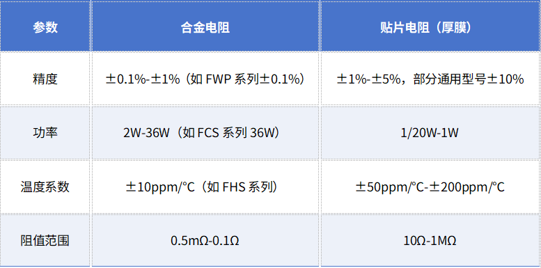 贴片电阻与合金电阻在材料结构、性能参数及应用场景上存在显著差异,具体对比如下: