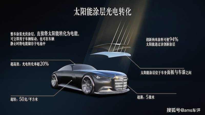 究竟能充多少电量?理想条件下,11平方米(相当于一辆中型SUV的表面积)的太阳能涂层每年产生的能量可增加12000公里续航。