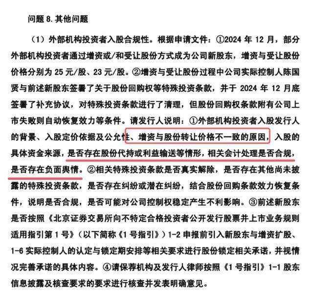 北交所关注了外部机构投资者入股合规性。