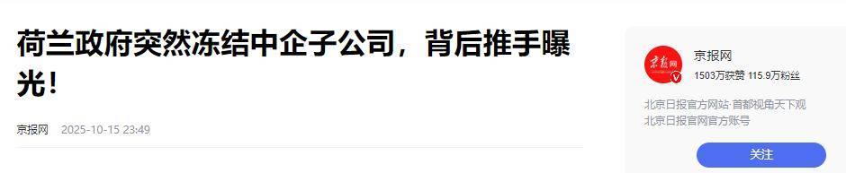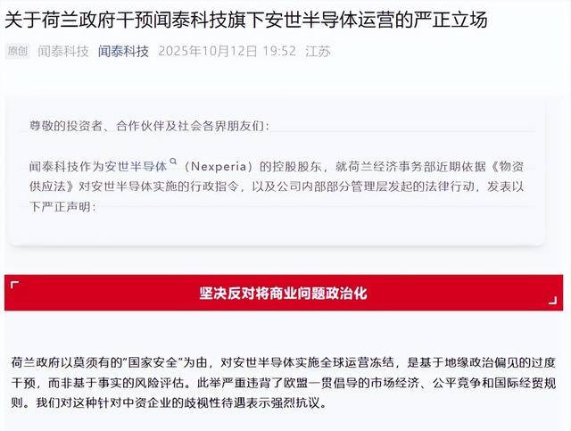 [熊猫]一夜之间,全球商业规则被撕得粉碎!荷兰政府以“国家安全”为名,对中国闻泰科技旗下的安世半导体痛下杀手,强制接管其核心资产。