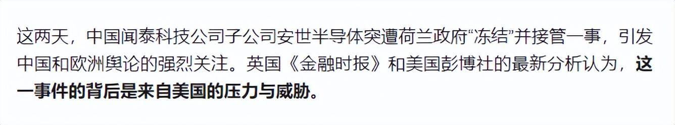 这种紧密的衔接,连《金融时报》、彭博社这些西方主流媒体都看出了不对劲,难怪有闻泰的高管在内部将荷兰比作美国的“温顺绵羊”。