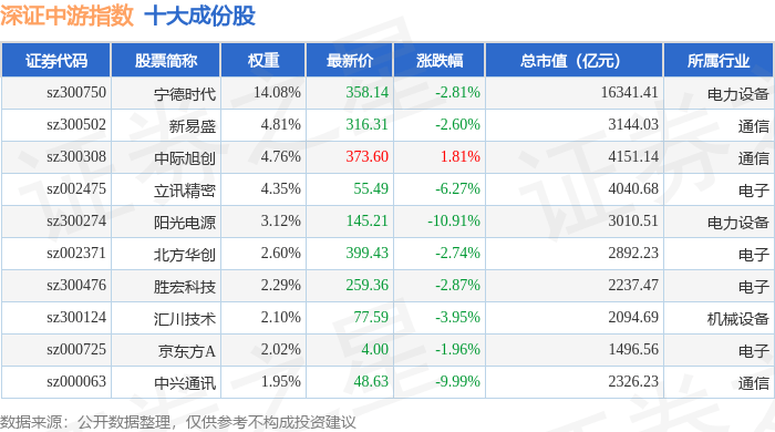 深证中游(399705)指数十大成份股详情如下: