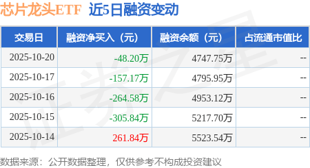 证券之星消息,10月20日,芯片龙头ETF(516640)融资买入405.16万元,融资偿还453.35万元,融资净卖出48.2万元,融资余额4747.75万元,近20个交易日中有12个交易日出现融资净买入。
