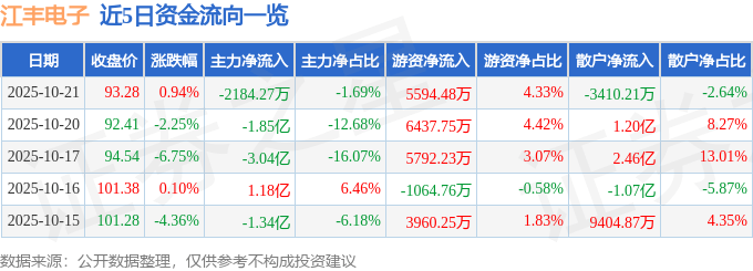 10月21日的资金流向数据方面,主力资金净流出2184.27万元,占总成交额1.69%,游资资金净流入5594.48万元,占总成交额4.33%,散户资金净流出3410.21万元,占总成交额2.64%。