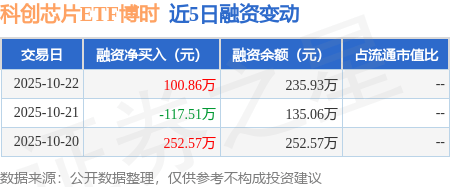证券之星消息,10月22日,科创芯片ETF博时(588990)融资买入178.03万元,融资偿还77.17万元,融资净买入100.86万元,融资余额235.93万元。