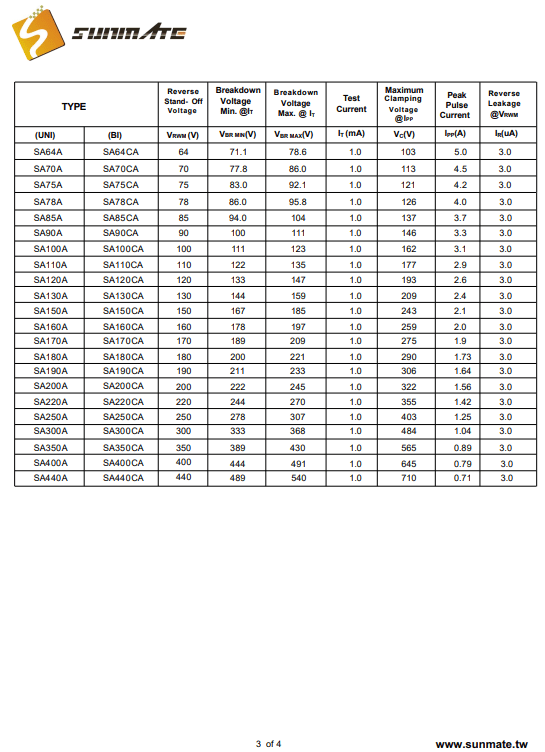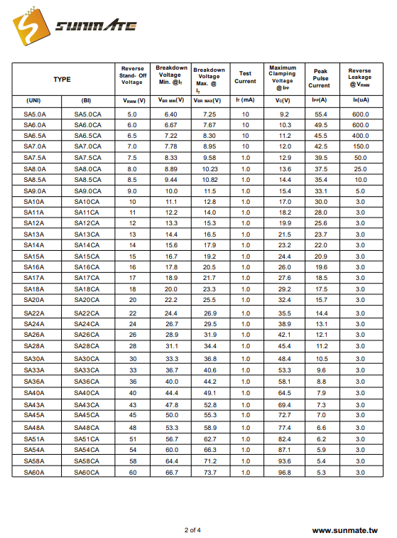 SA6.0CA双向 TVS瞬态抑制二极管,生产商: SUNMATE/森美特