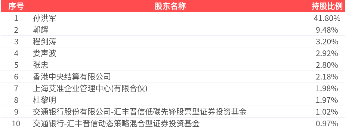 公司股东户数为1.70万户,前十大股东持股数量为1.59亿股,占总股本比例为68.33%,前十大股东持股情况如下: