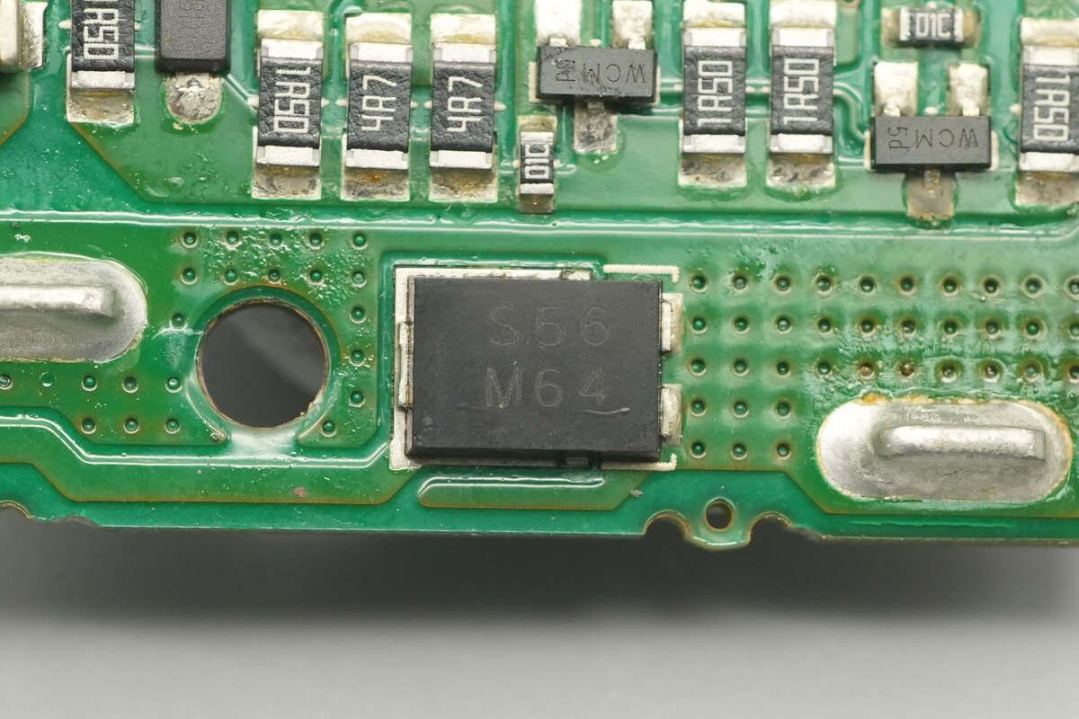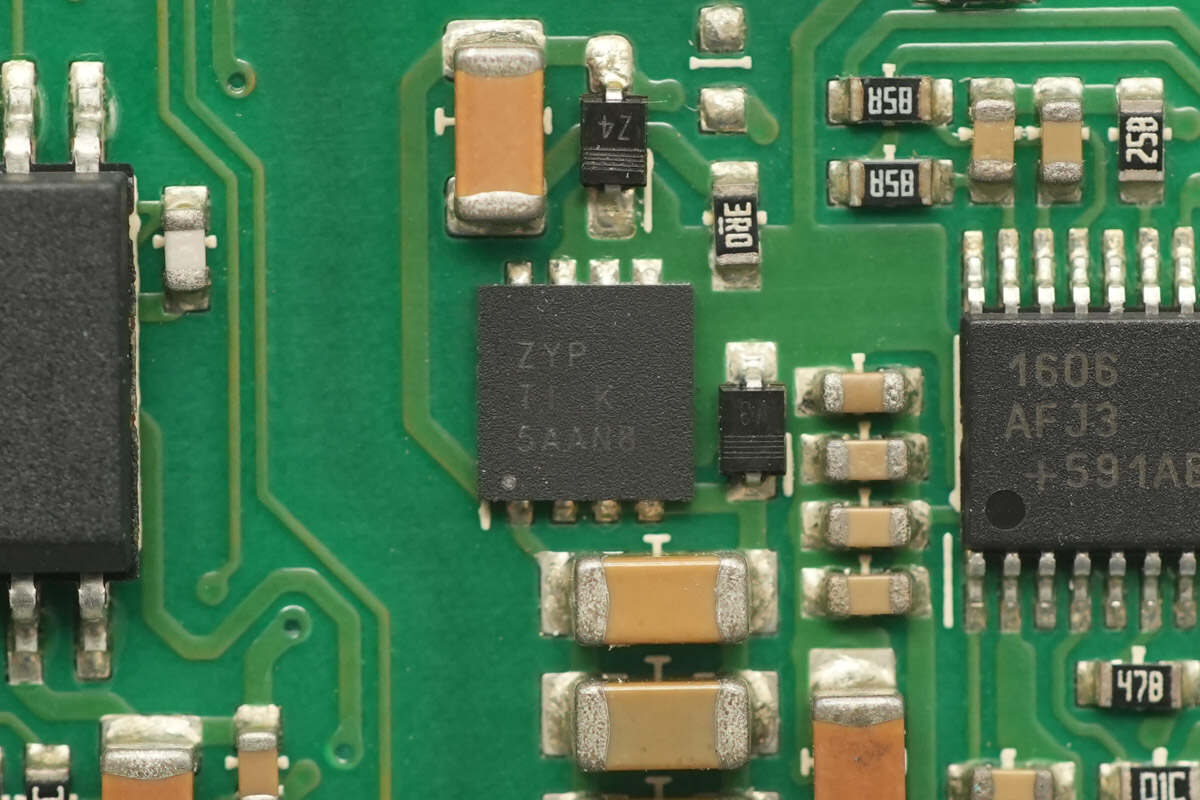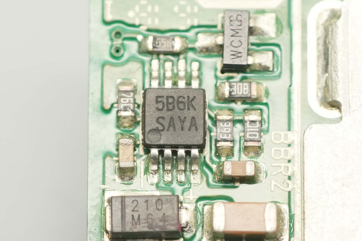 降压芯片来自德州仪器,丝印SAYA,型号LM5008A,是一颗6-95V输入电压的降压转换器,芯片内部集成100V开关管,支持350mA输出电流,采用VSSOP8封装。