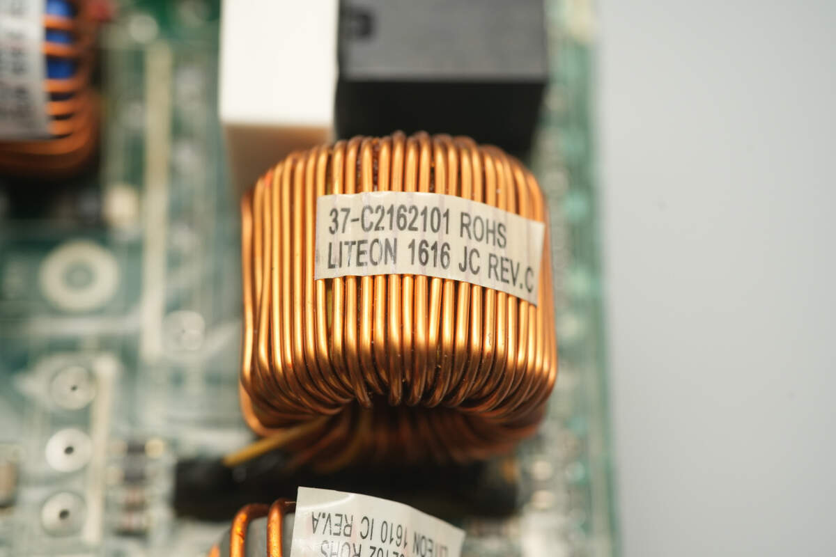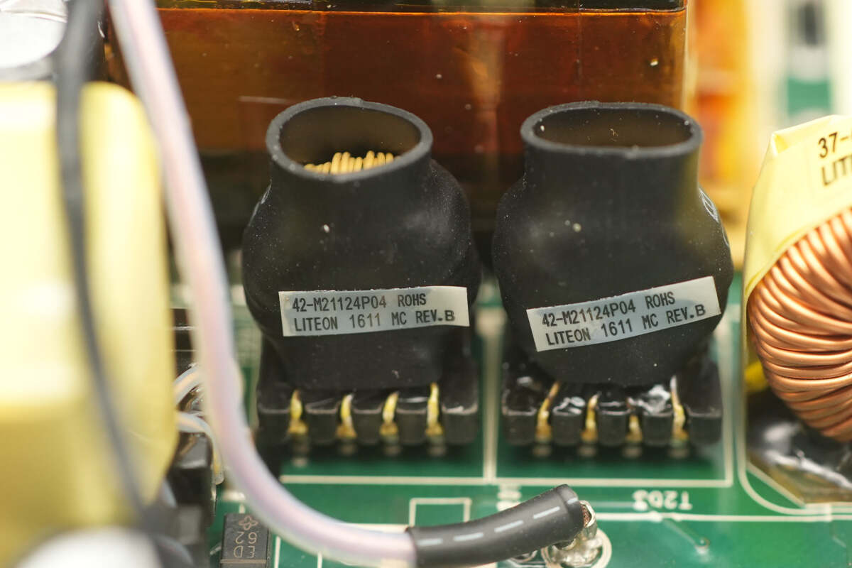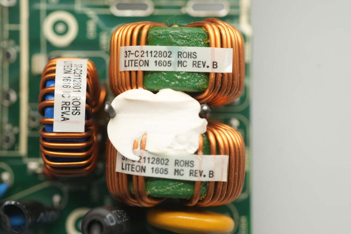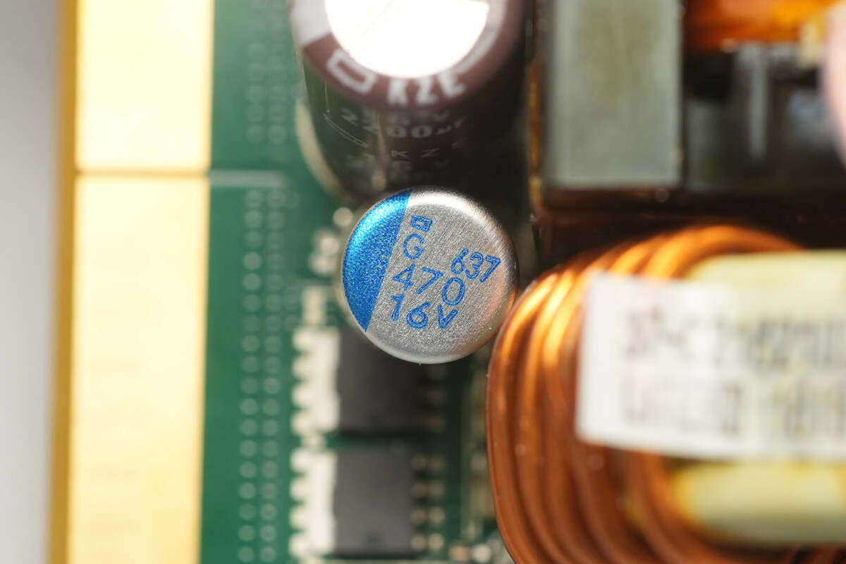 移相全桥开关管通过隔离变压器驱动,使用德州仪器UCC27424驱动器,同步整流管采用东芝TPH1R306PL,使用安森美NCP81071驱动器。辅助电源采用安森美NCP1236控制器搭配英飞凌SPA06N80C3开关管,使用FAN6204同步整流控制器搭配东芝TPH1200CNH同步整流管。电源内部全部采用日系电容,用料均为国际一线品牌,内部做工用料扎实。