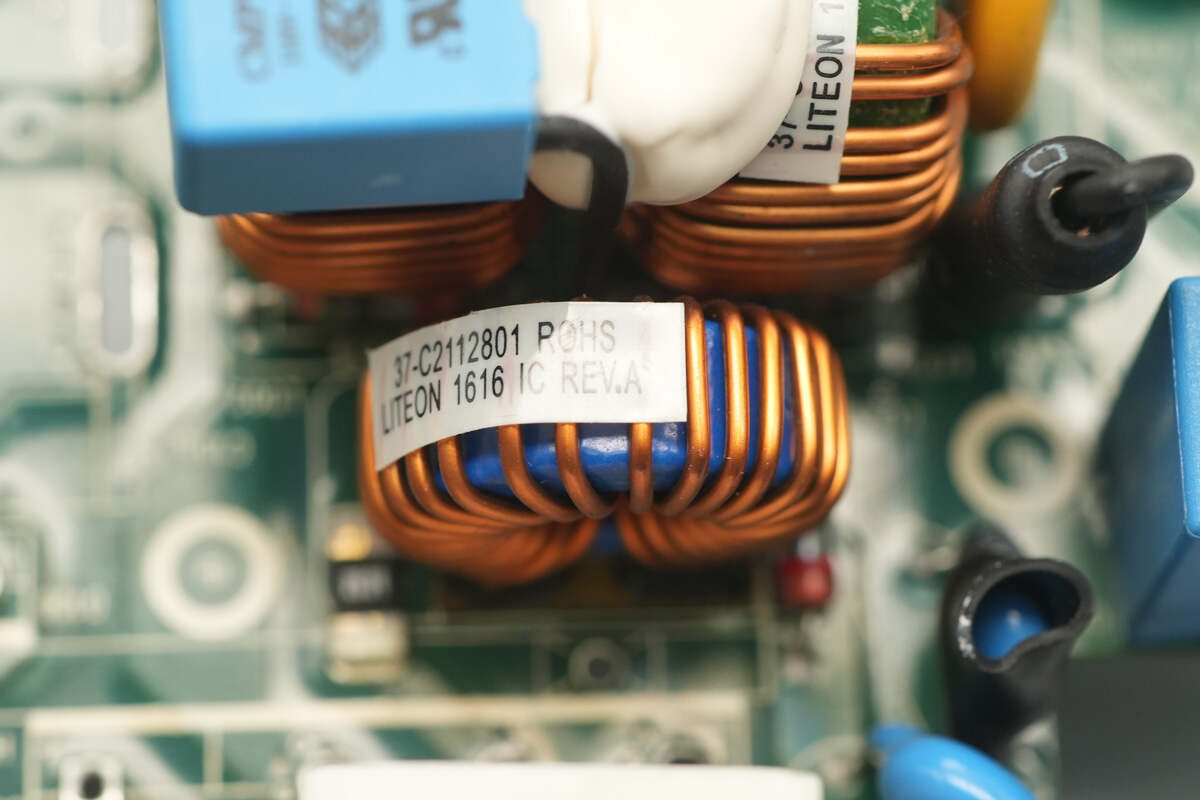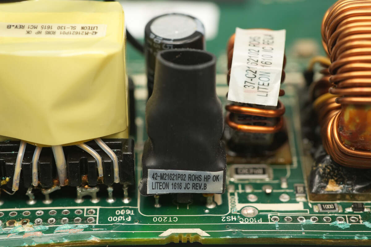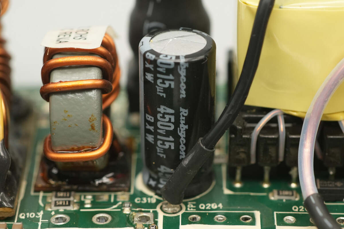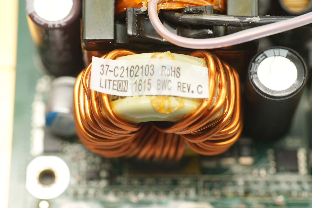 移相全桥开关管通过隔离变压器驱动,使用德州仪器UCC27424驱动器,同步整流管采用东芝TPH1R306PL,使用安森美NCP81071驱动器。辅助电源采用安森美NCP1236控制器搭配英飞凌SPA06N80C3开关管,使用FAN6204同步整流控制器搭配东芝TPH1200CNH同步整流管。电源内部全部采用日系电容,用料均为国际一线品牌,内部做工用料扎实。