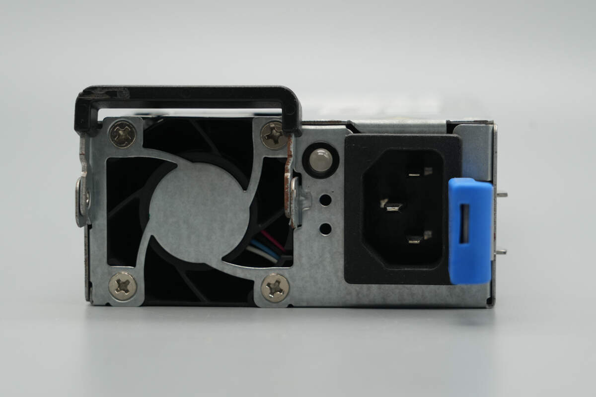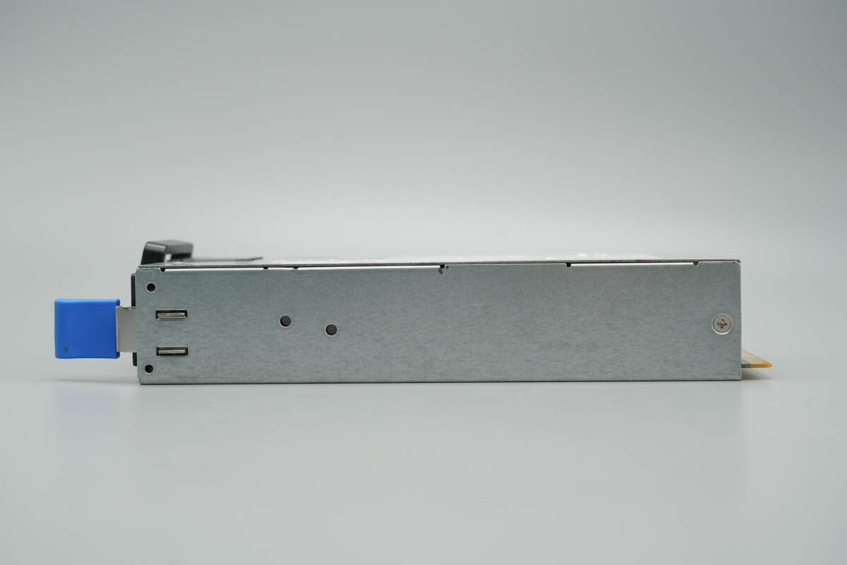 光宝这款服务器电源型号为PS-2160-1L,支持200-240V交流输入或240V直流输入,电源额定输出电压为12V,输出电流133A,额定输出功率1600W。待机电源输出电压为12V,输出电流2.5A。电源输入端设有品字电源接口,散热风扇和LED指示灯,并设有安装提手。输出端设有PCB金手指,连接到服务器供电,为热插拔设计。