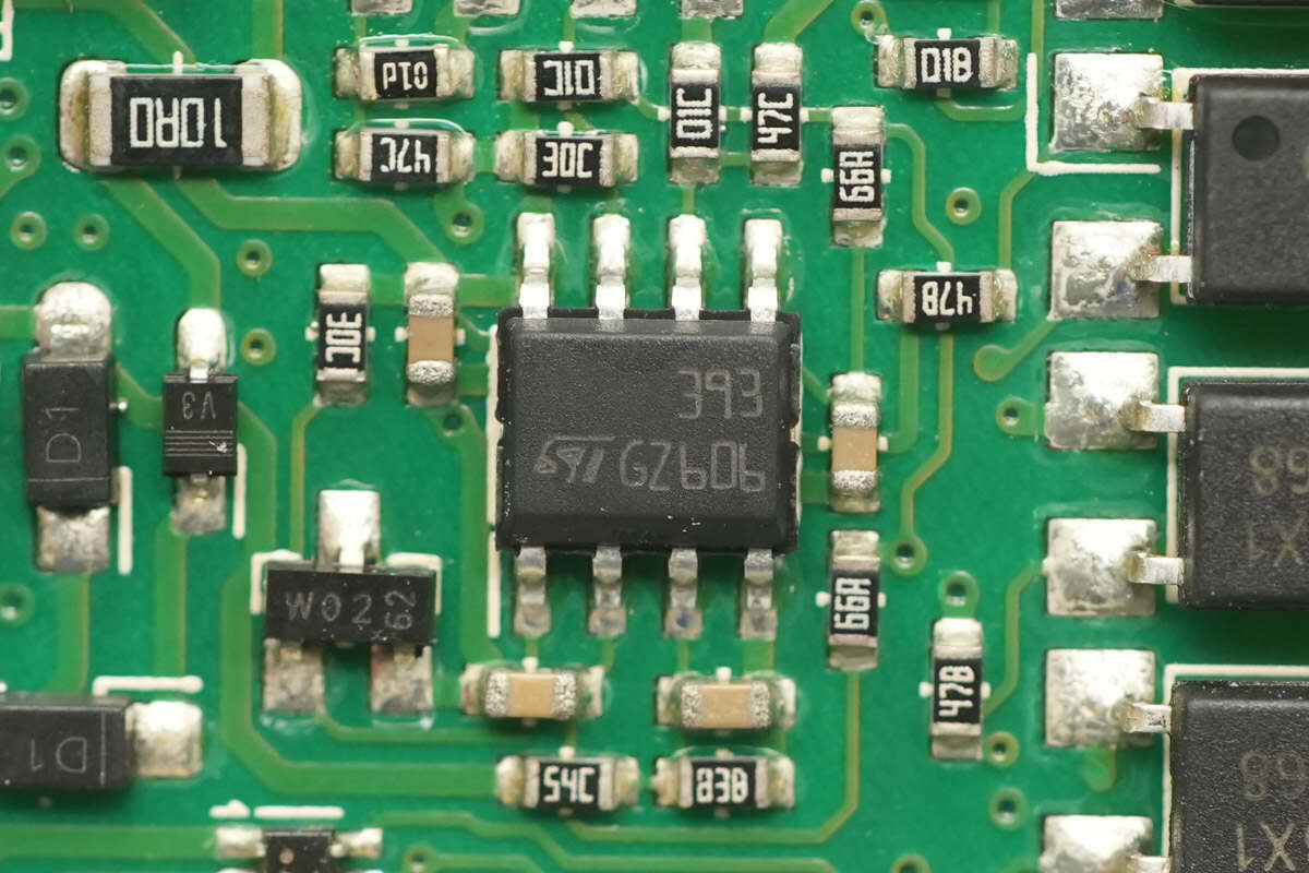 电压比较器来自意法半导体,型号LM393,为通用双路电压比较器,采用SO8封装。