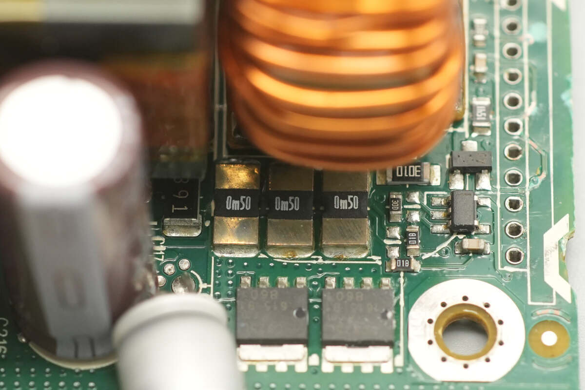 三颗0.5mΩ取样电阻并联,用于检测输出电流。