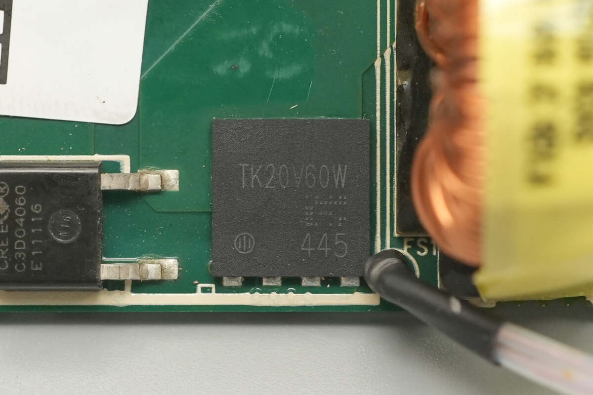 开关管来自东芝,型号TK20V60W,NMOS,耐压600V,导阻136mΩ,采用DFN8*8封装。