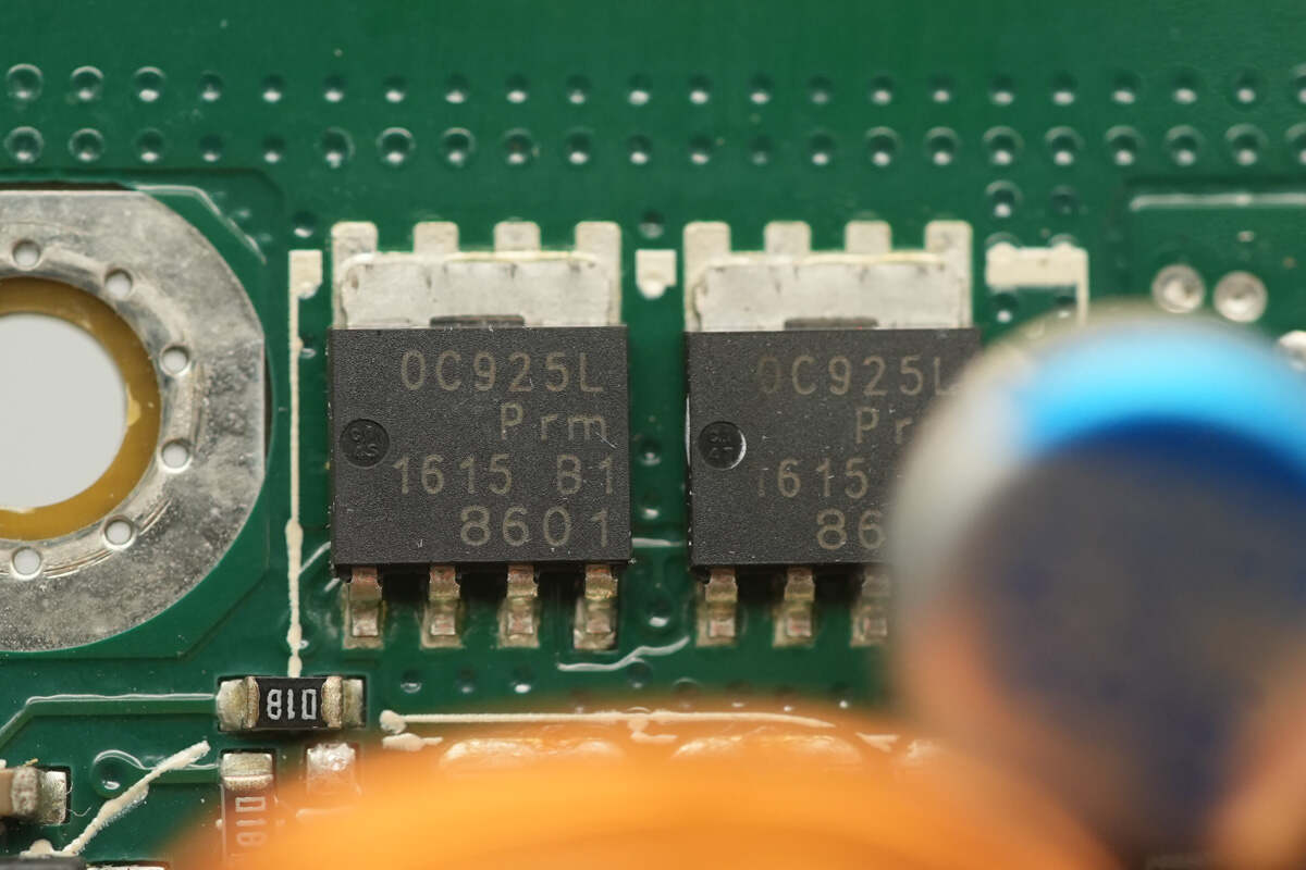 输出控制管来自安世半导体,丝印0C925L,型号PSMN0R9-25YLC,NMOS,耐压25V,导阻0.99mΩ,采用LFPAK封装。