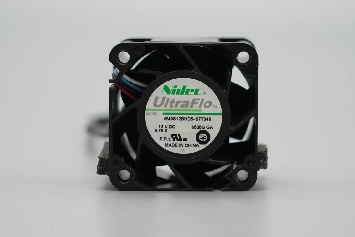 散热风扇来自尼得科,型号W40S12BHD5-07T046,规格为12V 0.75A,中国制造。