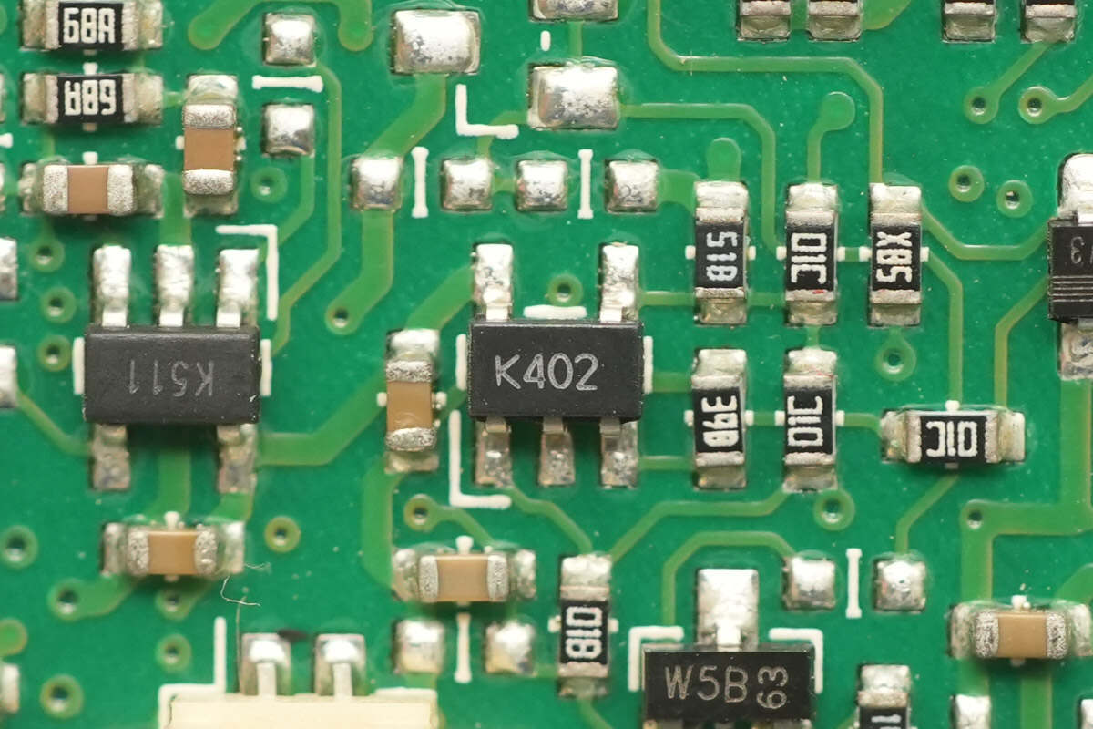 运放来自意法半导体,丝印K402,型号TS321AILT,为低功耗单运放,采用SOT23-5封装,小板上共设有3颗。