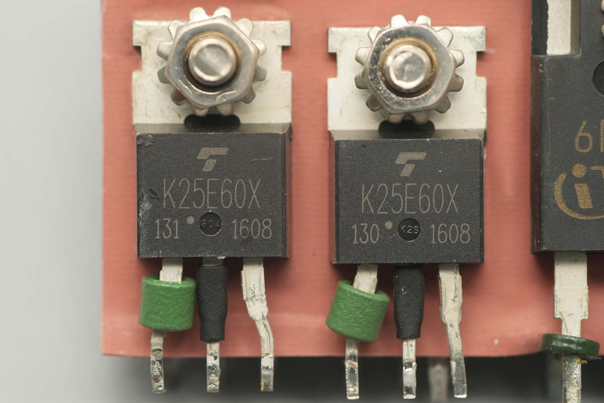 移相全桥开关管来自东芝,型号TK25E60X,NMOS,耐压600V,导阻105mΩ,采用TO-220封装。