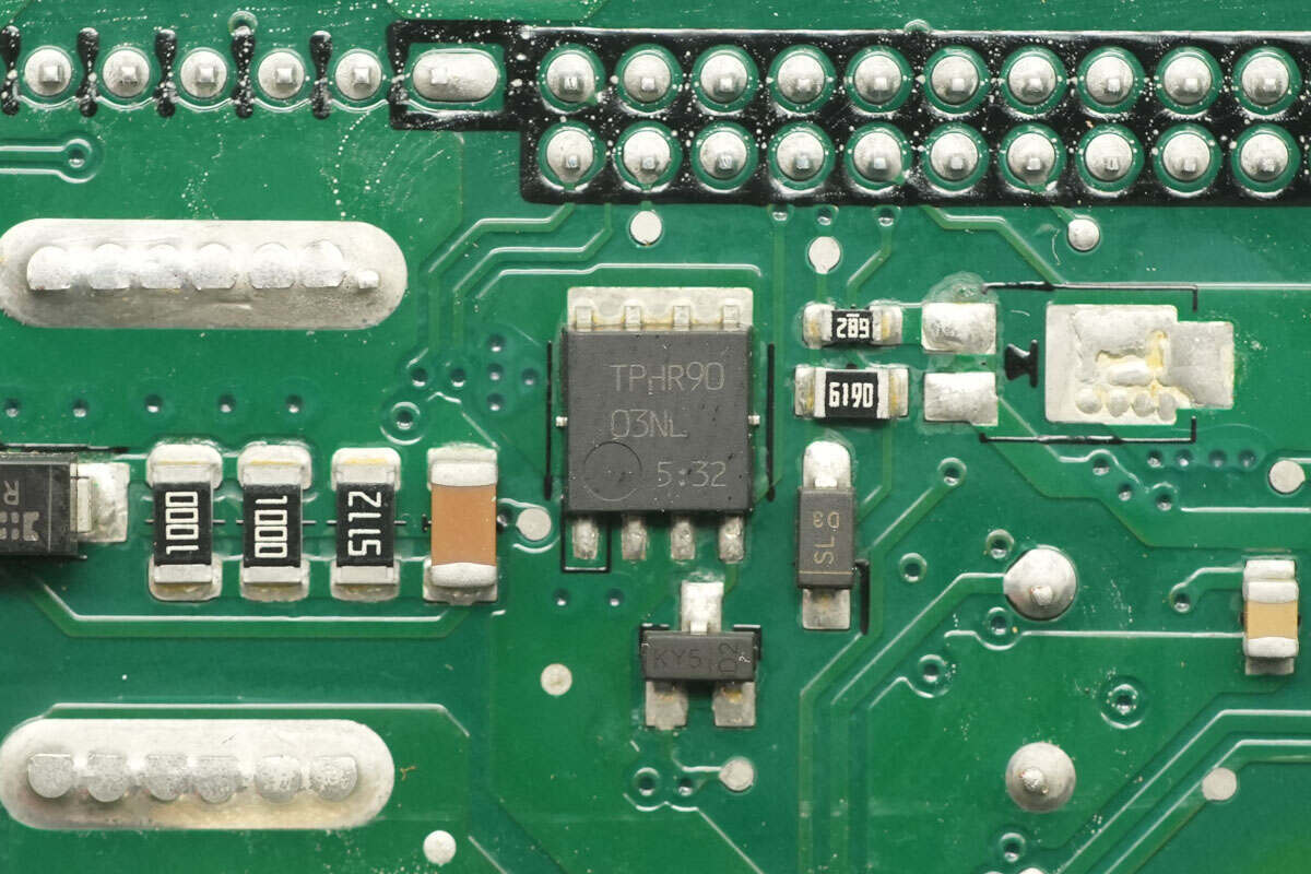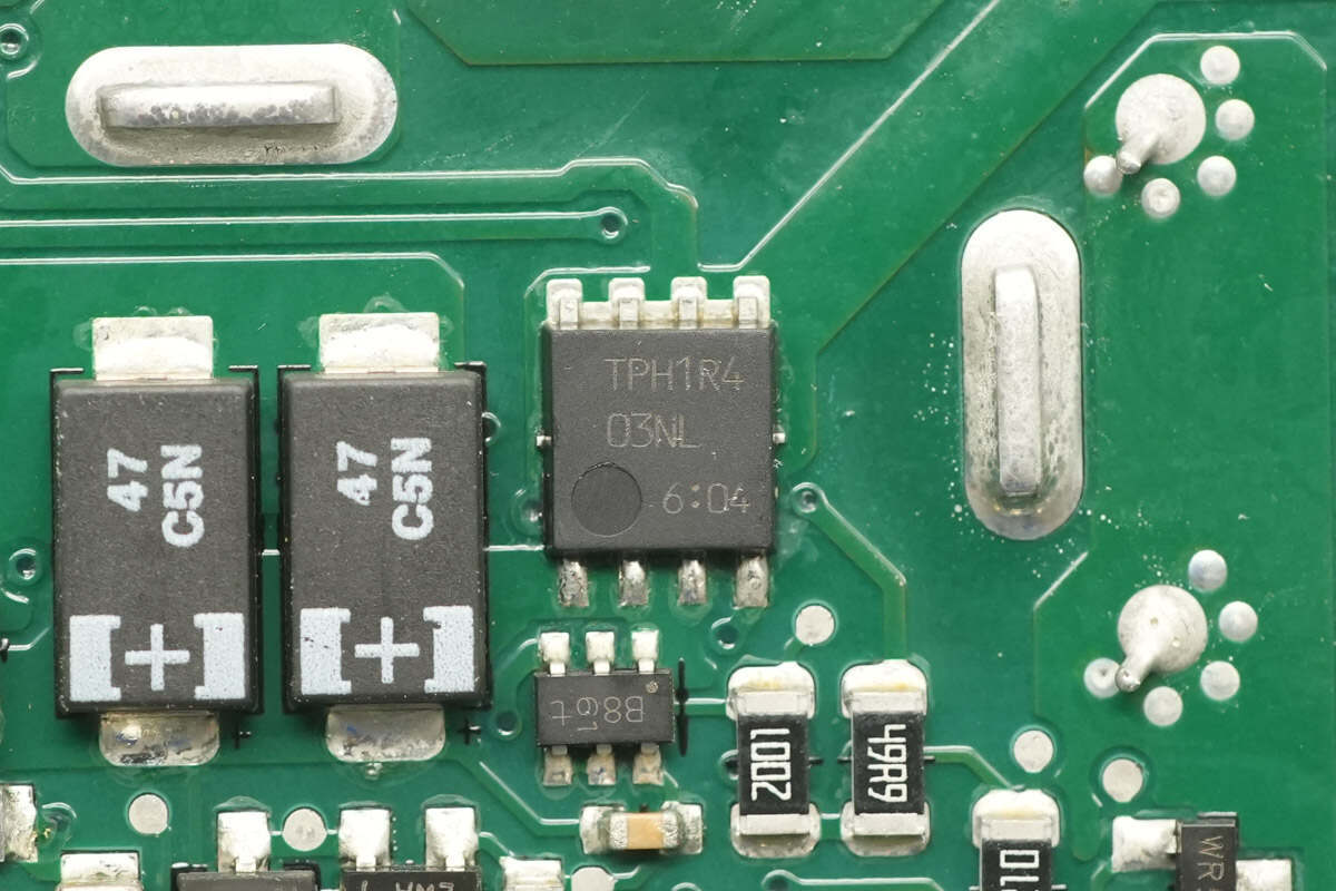 另一颗输出控制管型号TPHR9003NL,NMOS,耐压30V,导阻1.1mΩ,采用SOP Advance封装。