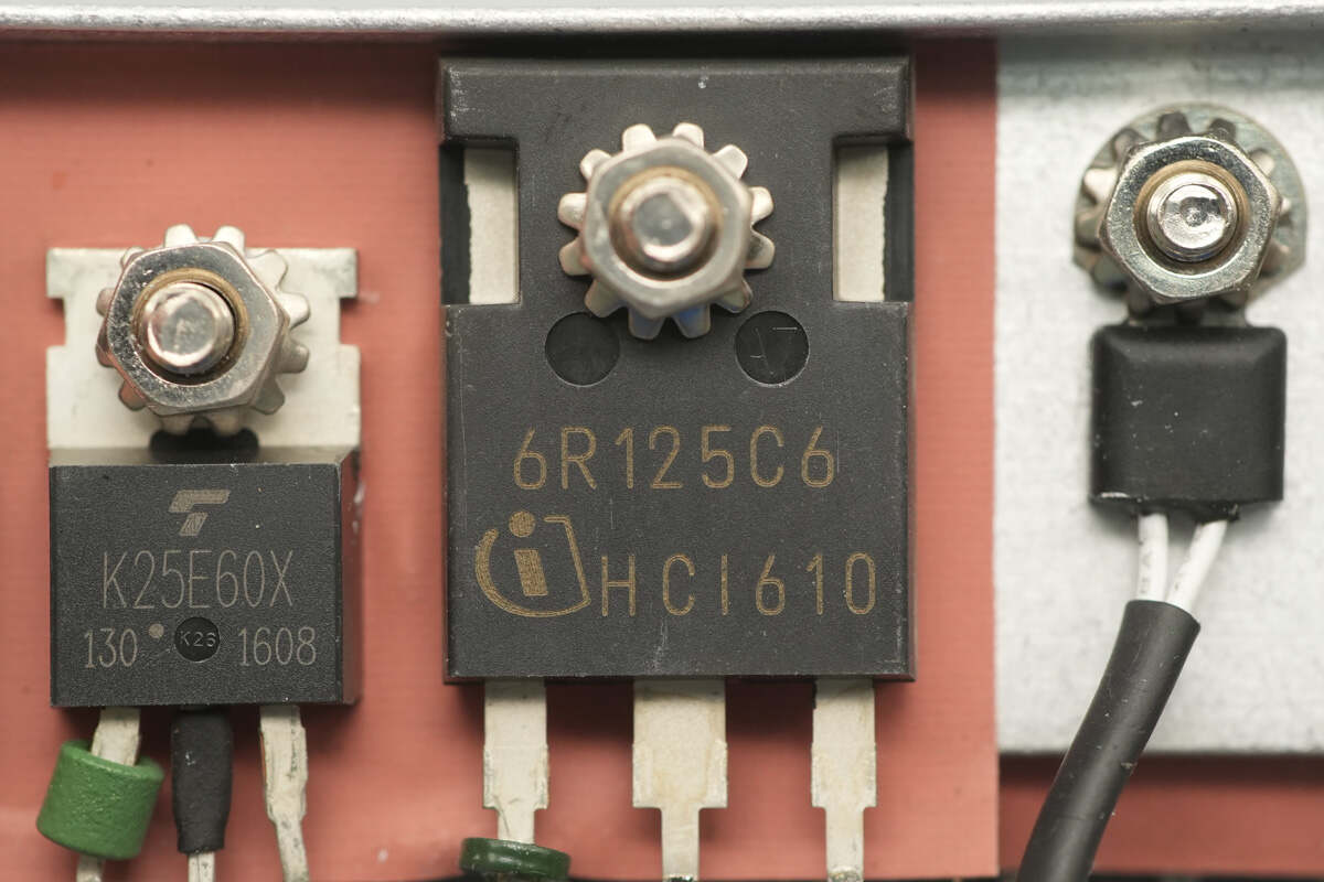 PFC开关管来自英飞凌,丝印6R125C6,型号IPW60R125CP,NMOS,耐压650V,导阻125mΩ,采用TO247-3-1封装。