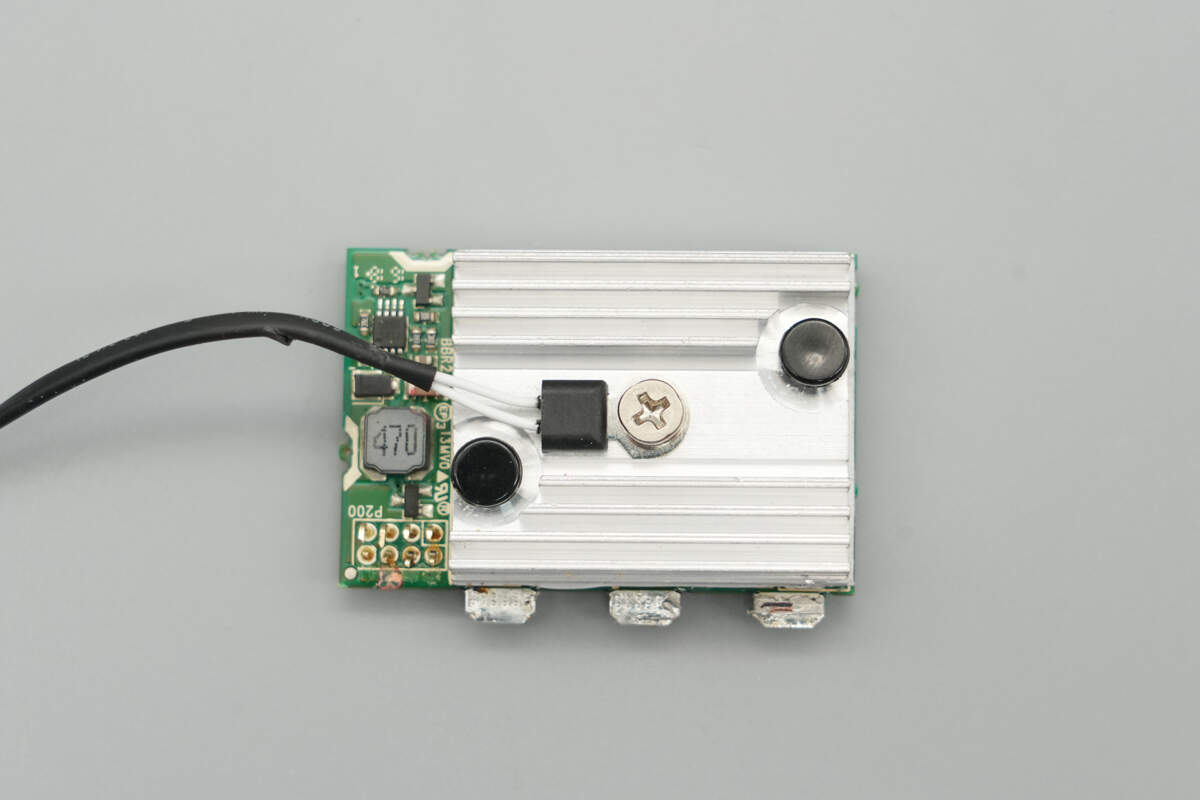 拆下散热片,另一面设有同步整流管和降压芯片。