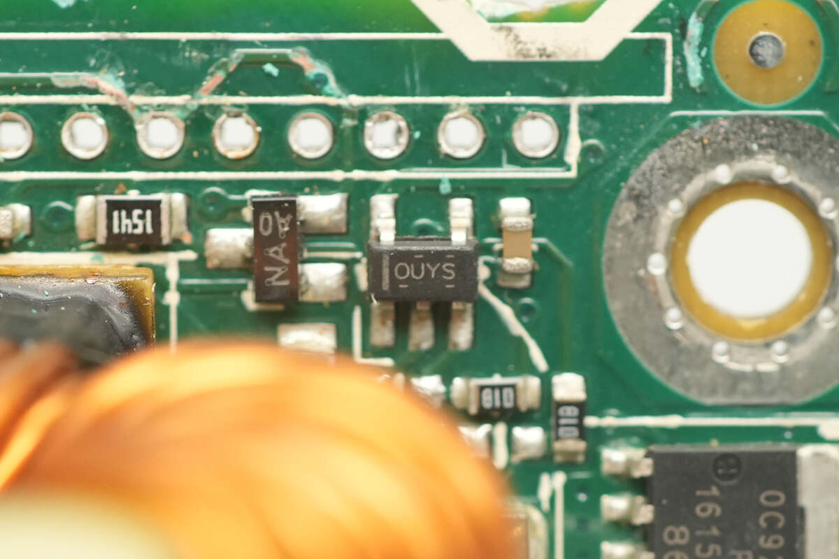 运放来自德州仪器,丝印OUYS,型号OPA192,为低失调电压,低输入偏置电流,轨到轨输入输出精密运算放大器,采用SOT23封装。