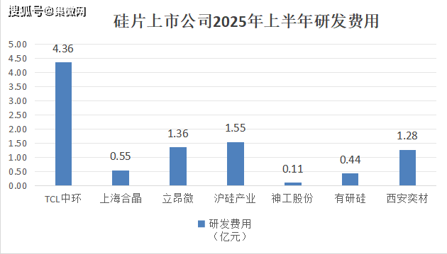 2025年上半年,TCL中环以4.36亿元的研发费用位居行业首位,远超其他企业,研发费用同比增长率也最高,达到26%,体现了其雄厚的资金实力和对技术领先地位的坚决维护。沪硅产业2025年上半年的研发费用为1.55亿元,立昂微研发费用1.36亿元,西安奕材1.28亿元,成为第二梯队。上海合晶研发费用0.55亿元,有研硅0.44亿元,神工股份0.11亿元,组成第三梯队。