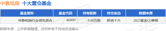 持有中富电路最多的基金为华泰柏瑞行业领先混合,目前规模为1.91亿元,最新净值3.499(10月29日),较上一交易日上涨1.63%,近一年上涨52.01%。该基金现任基金经理为吕慧建。