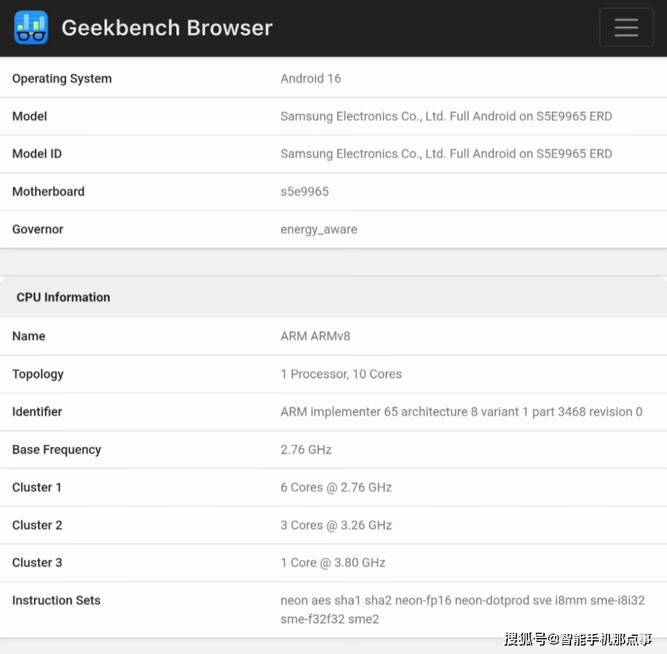不过话说回来,仔细看Exynos 2600的CPU布局:1×3.8GHz + 3×3.26GHz + 6×2.76GHz,对比骁龙的2×4.61GHz + 6×3.63GHz,三星选择“多中核+少大核”的组合。
