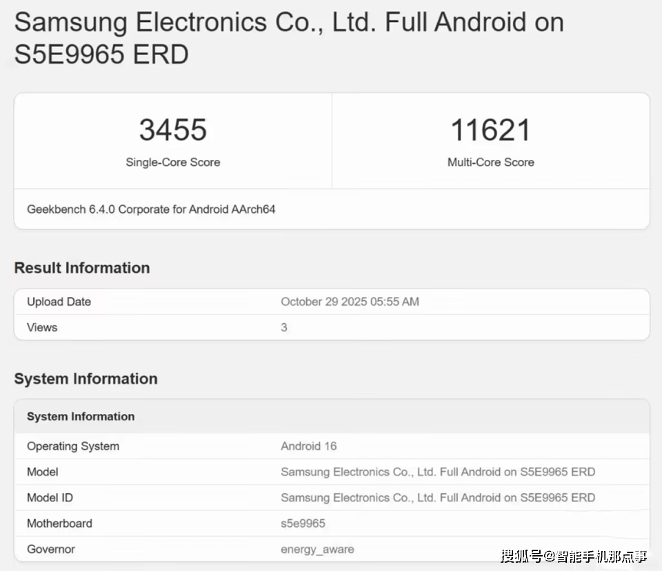 这次的数据直接炸场:Geekbench单核3455分,多核11621分,不仅比自家前代暴涨,还一脚踩进了高通和苹果的后花园。