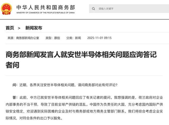 商务部新闻发言人就安世半导体相关问题应询答记者问。