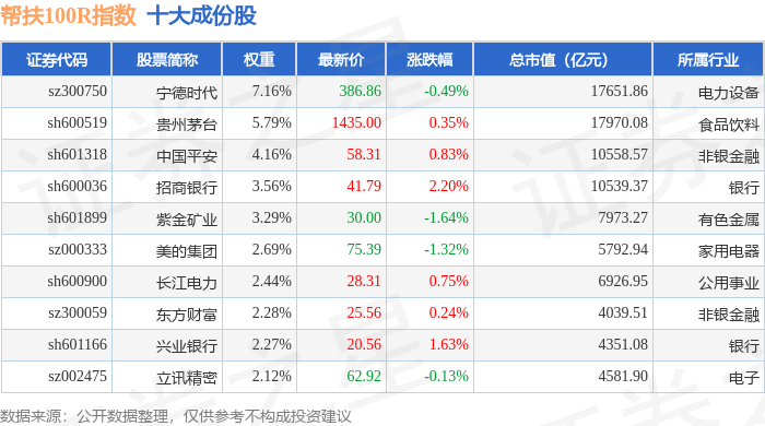 帮扶100R(480065)指数十大成份股详情如下: