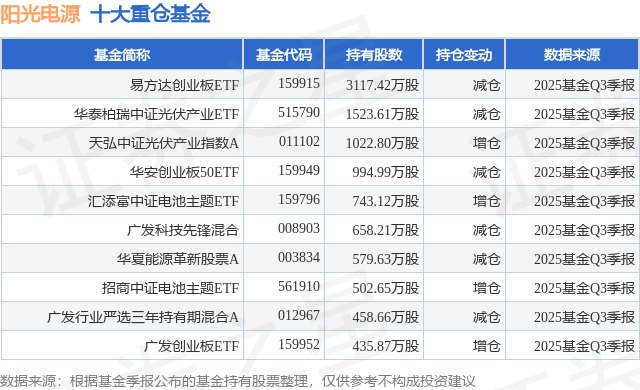 重仓阳光电源的前十大公募基金请见下表: