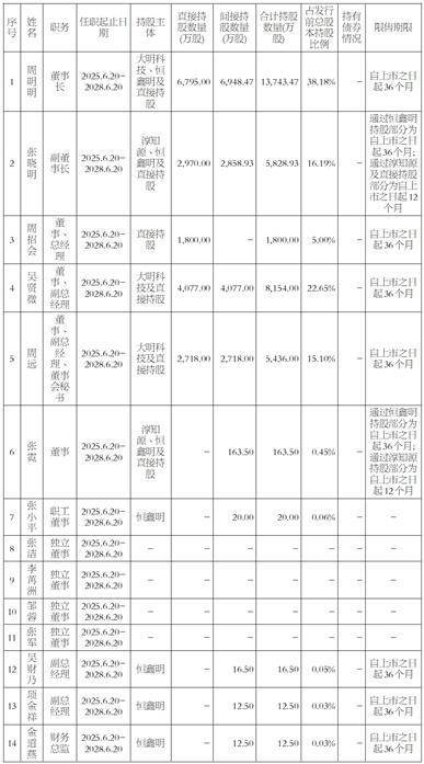 周明明先生,中国国籍,无境外永久居留权,1965年3月出生,大专学历。1982年至1988年历任乐清石化机械厂电工、车间主任、业务经理;1989年创立华夏无线电厂,担任厂长;1997年4月至2022年6月担任大明有限执行董事、经理;2013年12月至2022年5月,担任乐清市合兴小额贷款股份有限公司执行监事;2000年8月至今担任重庆大明执行董事;2017年12月至今历任大明科技执行董事、经理;2019年6月至今担任重庆颂明执行董事;2020年7月至今担任大明电子(重庆)执行董事;2021年12月至今担任恒鑫明执行事务合伙人;2022年6月至今担任乐清明远执行董事兼总经理;2022年6月至今担任大明电子董事长;2022年10月至今担任乐清明渝、乐清明轩、乐清明灿、乐清明广、乐清明宏和乐清明哲的执行事务合伙人。