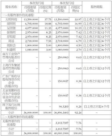 (十一)发行前股东所持股份的流通限制及期限:详见本上市公告书之“第八节 重要承诺事项”之“一、相关承诺事项”之“(一)本次发行前股东所持股份的限售安排、自愿锁定股份、延长锁定期限的承诺”的相关内容。