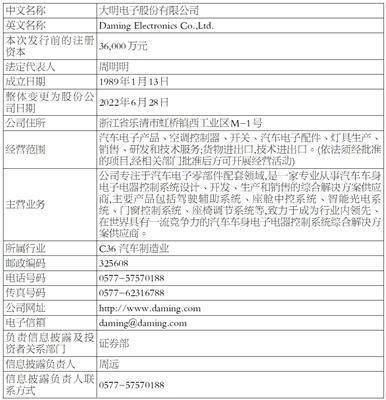 截至本上市公告书签署日,大明科技的基本情况如下: