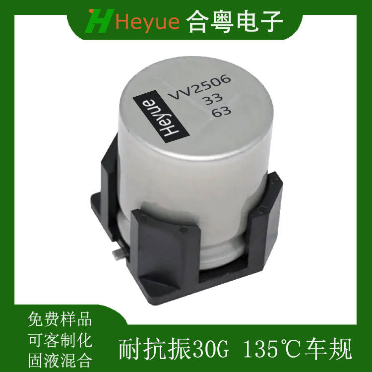 33UF63V 8×10.5车规固液混合贴片电解电容是一种结合了导电聚合物与电解液优势的混合型电解电容,专为汽车电子等严苛环境设计,具有耐高低温循环、长寿命、低ESR等特点,以下是对其的详细介绍: