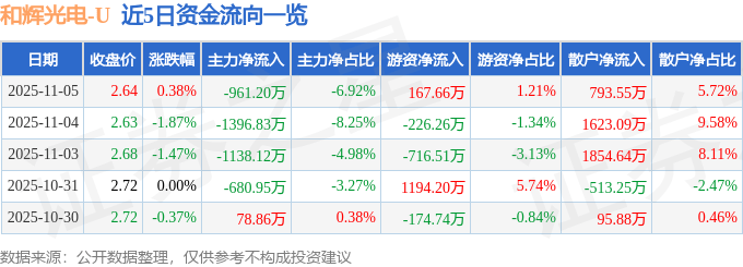证券之星消息,截至2025年11月5日收盘,和辉光电(688538)报收于2.64元,上涨0.38%,换手率0.91%,成交量52.6万手,成交额1.39亿元。