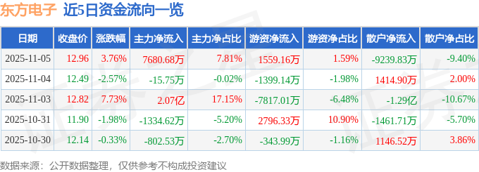 证券之星消息,截至2025年11月5日收盘,东方电子(000682)报收于12.96元,上涨3.76%,换手率5.78%,成交量77.51万手,成交额9.83亿元。