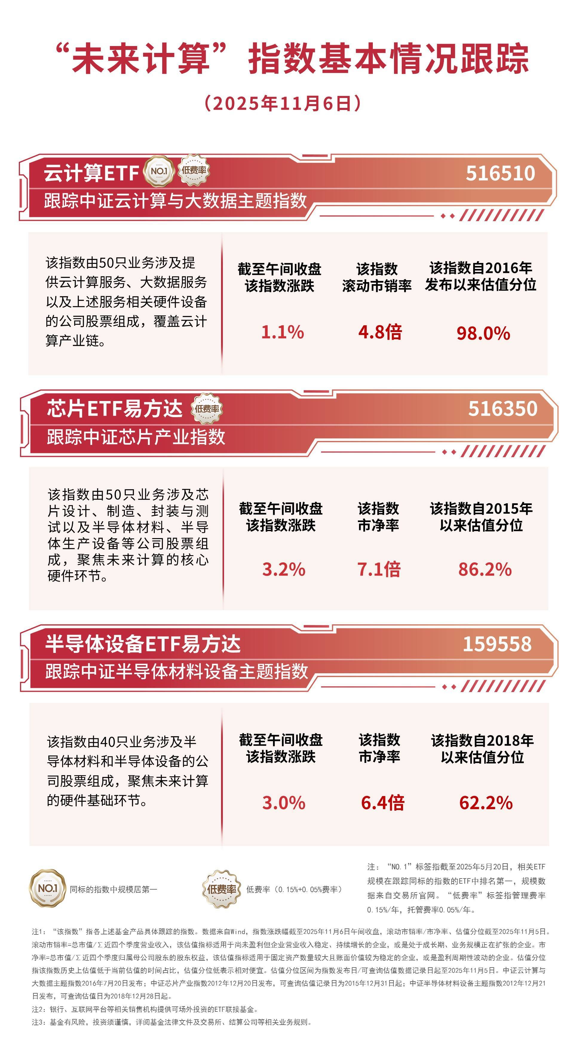 今日早盘,科技题材回归,半导体板块强势反弹。截至午间收盘,海光信息涨超7%,寒武纪-U涨超6%,拓荆科技涨超5%,中微公司、江波龙涨超4%,指数方面,中证芯片产业指数上涨3.2%,中证半导体材料设备主题指数上涨3%,中证云计算与大数据主题指数上涨1.1%。
