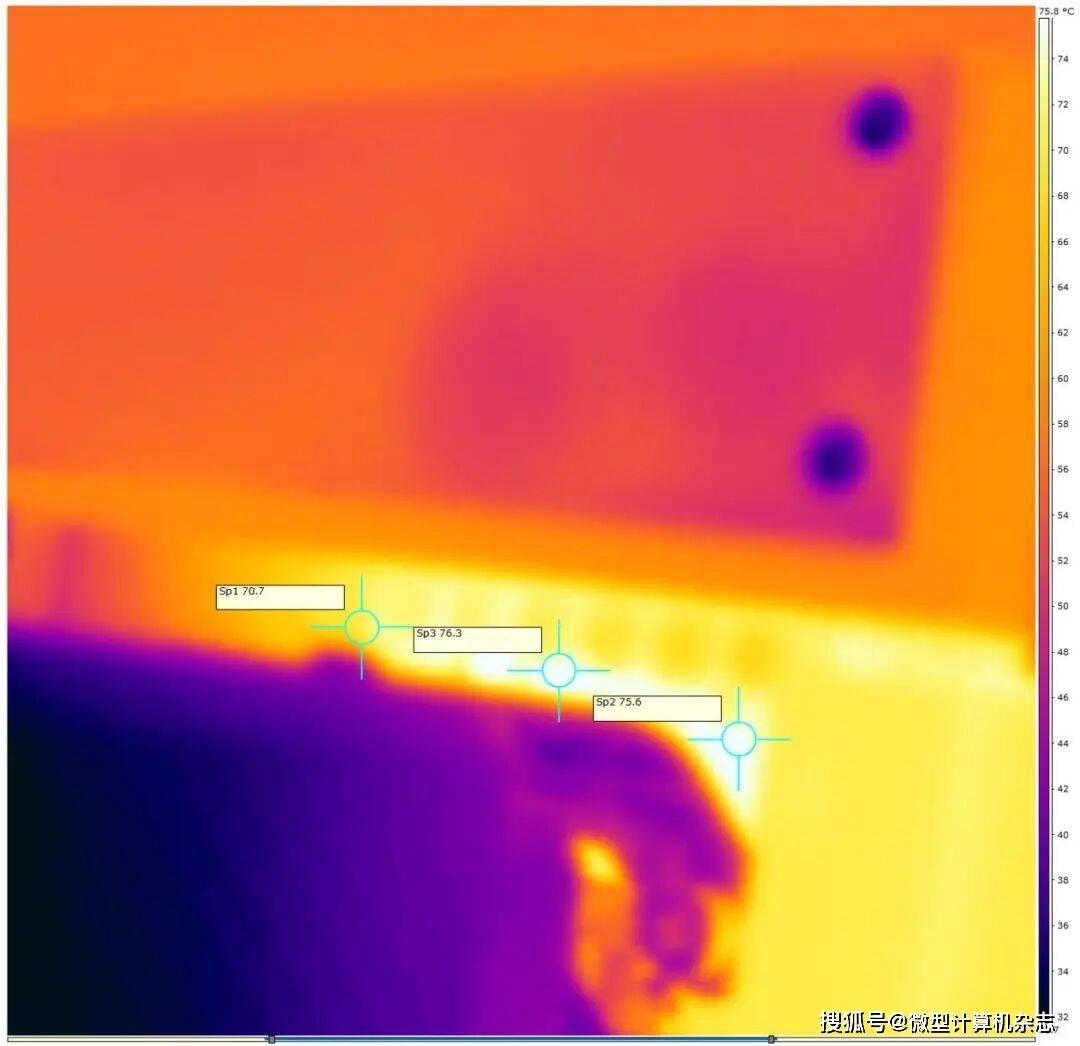 ▲在锐龙9 9950X以240W功耗运行AIDA64 FPU烤机半小时后,主板供电电路的最高温度为76.3℃。