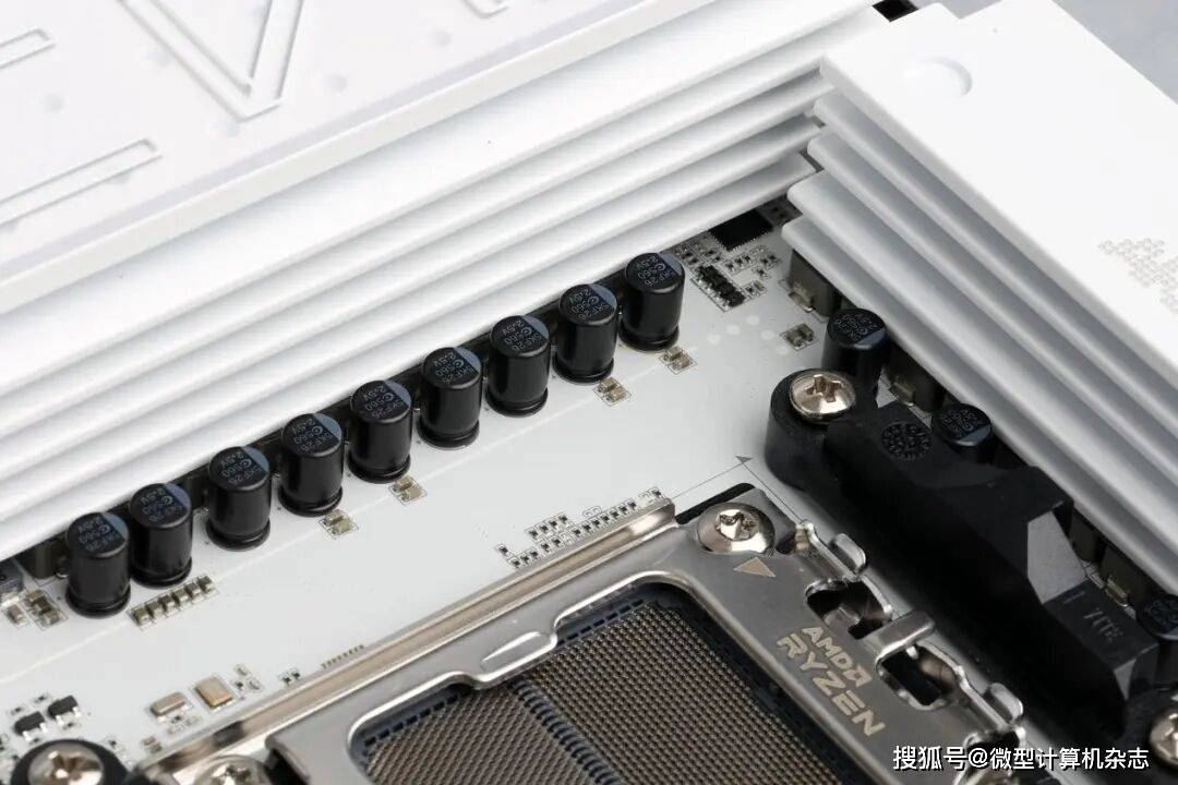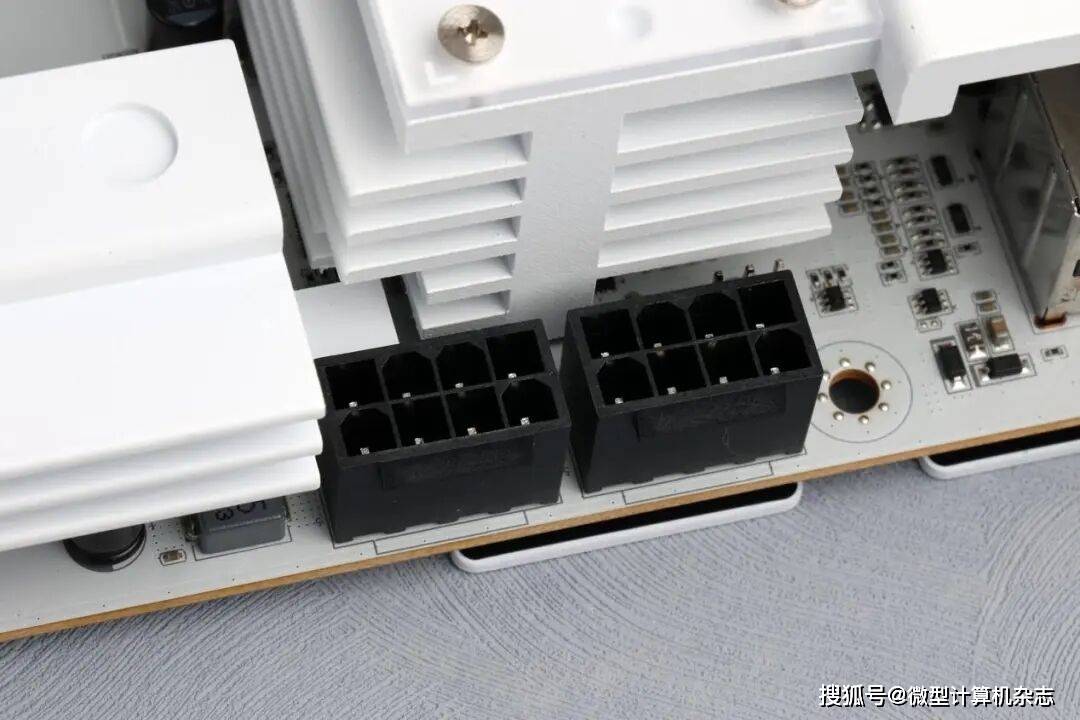 这款主板还加入了高品质黑金固态电容,具有低能耗、耐高温的特性,可以提升高负载下的稳定性。另外,该主板的每相供电电路配备高磁导率和低干扰的铁素体电感,通过磁滞回线优化实现温度系数低至±3%的稳定性表现。电感量和品质因数等参数随温度的变化较小,保证了电路在较宽温度范围内的可靠工作。这款主板的处理器供电接口还采用8pin+8pin双接口设计,以提供充足的供电。