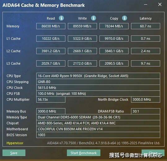 ▲使用38-48-48-127延迟设置、1.45V内存电压,B850M ARK方舟主板能将内存超频到DDR5 8400。
