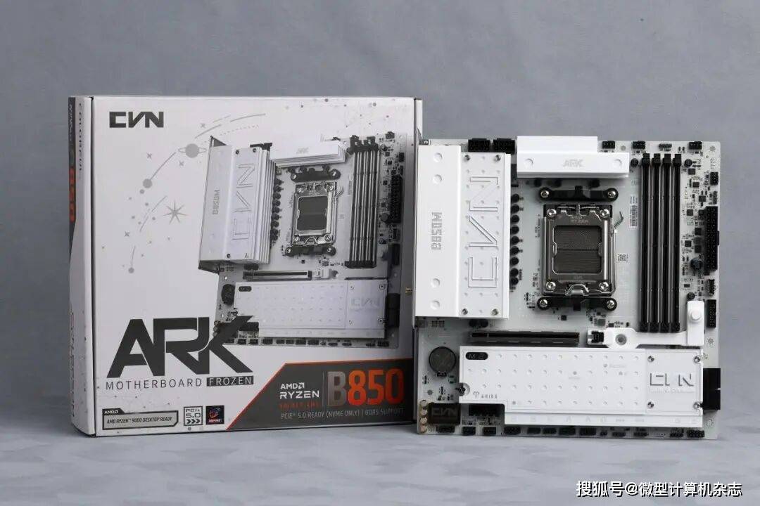 继前不久推出首发价仅799元、性价比诱人的七彩虹战斧B850M超级黑刃主板后,为满足对性能、颜值要求更高的用户,七彩虹科技再接再厉于近期推出了CVN B850M ARK FROZEN V14方舟主板(以下简称B850M ARK方舟主板)。在外观上,它与普通主板有明显不同——纯白设计、厚重的散热装甲与齐全的内存、PCIe 5.0接口,再加上颇有金属质感的音频屏蔽罩,给人惊艳、高贵的观感。我们看到它的第一眼就觉得这是一款很适合安装在海景房机箱进行展示的高颜值主板,是一款品质应该还不错的产品。接下来就让我们通过实际测试来看看,它的性能表现是否如其颜值一样出众?
