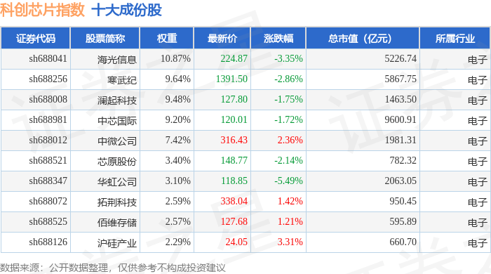 证券之星消息,11月10日,科创芯片(000685)指数报收于2630.05点,跌0.99%,成交682.31亿元,换手率2.11%。当日该指数成份股中,上涨的有24家,联芸科技以3.47%的涨幅领涨,下跌的有26家,杰华特以5.57%的跌幅领跌。