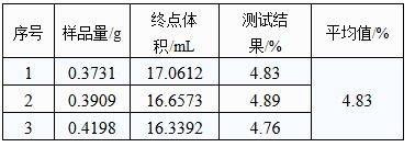 ●称取适量样品到滴定杯中,量筒量取20mL四氯化碳到滴定杯中,充分溶解,然后用移液管取10mLIBr溶液到滴定杯中,混匀,于暗处放置反应一小时,加入5mLKI溶液,搅拌反应三分钟,再加50mL纯水,插入电极和滴定头,选用乙烯基滴定方法,用硫代硫酸钠标准溶液滴定至终点,同时做空白实验。