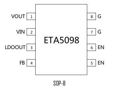 ETA5098是一款集成了一个12V接口限流器和输出可调的线性稳压器。主要用于各种有12V对外供电接口的仪器仪表。ETA5098内部采用了高精度,低温度系数的基准源,电流检测模块,纹波滤波器,低功耗误差放大器,过流保护,短路保护等模块。ETA5098外部只需要简单的几个电阻电容即可工作。
